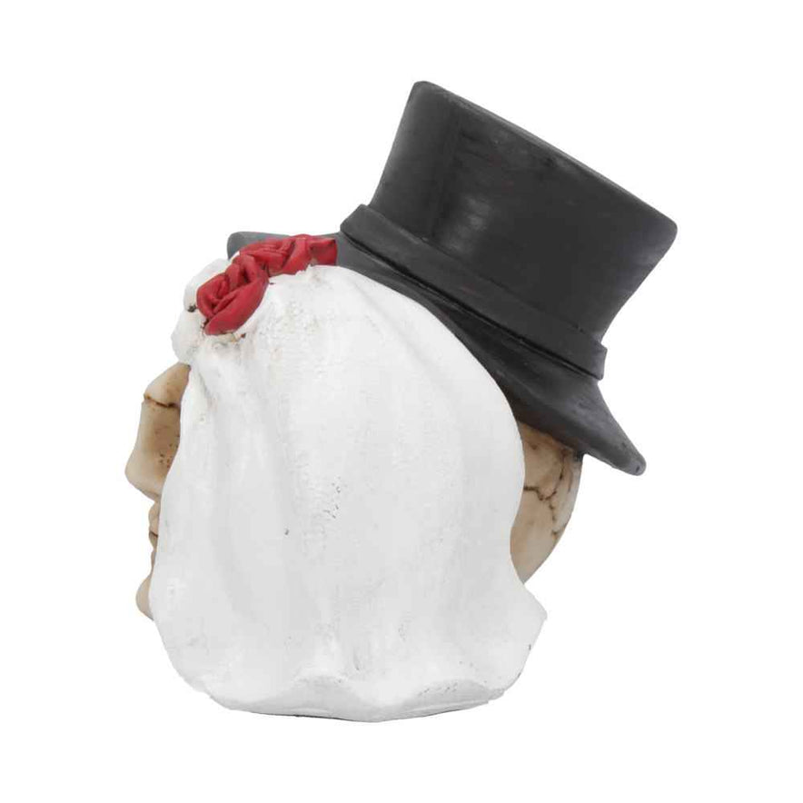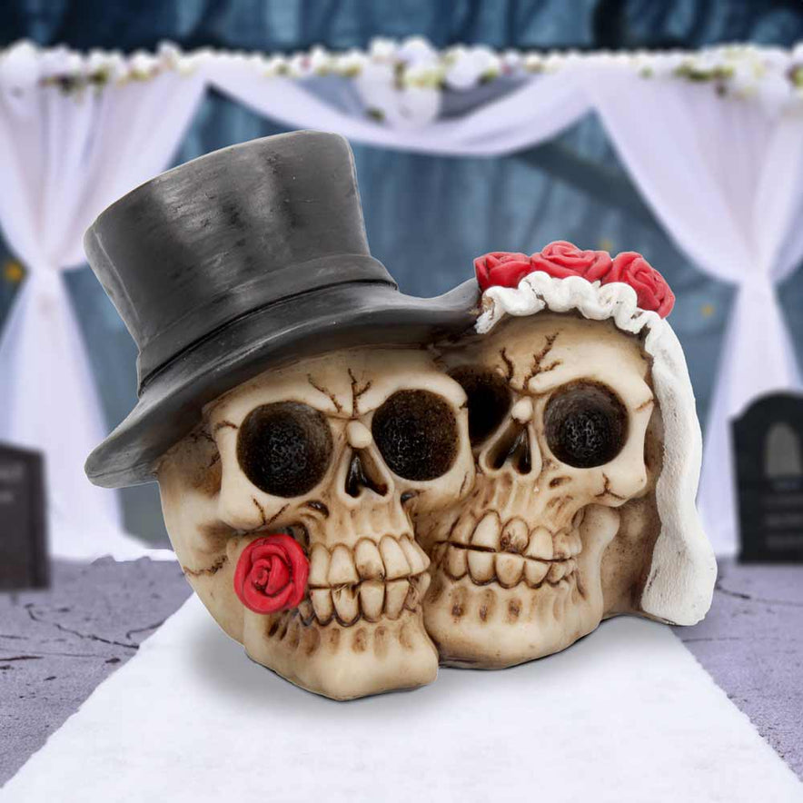 Celebrate eternal devotion with the Together Forever 16cm sculpture. This daring piece features two skulls fused in a symbolic union, expertly cast in high-quality resin and meticulously hand-painted. Perfect for a Gothic wedding or as a bold statement of unbreakable bonds, it adds a striking edge to any setting.